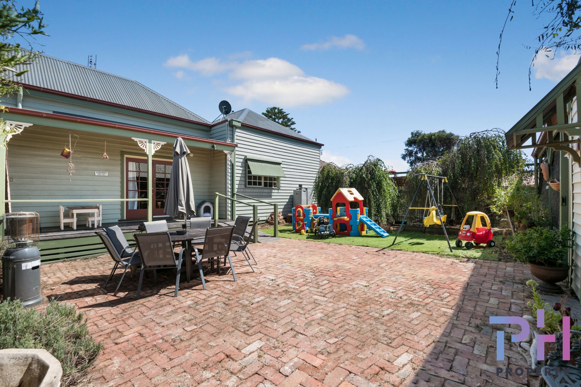 The front features a traditional return verandah, picket fence and brick paved walkway. The rear of the home has a decked alfresco, brick paved courtyard and a bungalow/studio in the back corner. A carport off the bungalow the has private access from Grace Street and offer extra parking for two vehicles.
