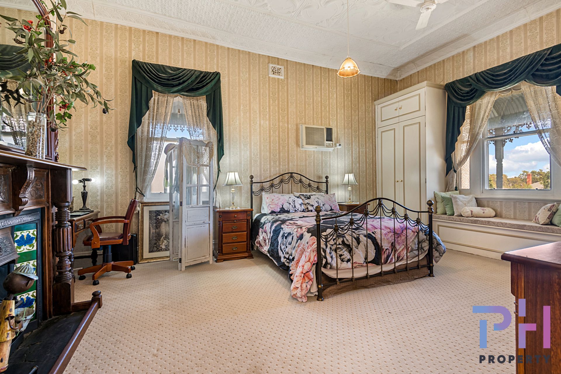 From the hallway there are three large bedrooms (the master is huge!!) all consisting of built in robes, fireplaces with decorative mantels; the front two bedrooms have pressed metal ceilings and the master bedroom has a window seat overlooking the front yard just adding to some of the many features this home has to offer.